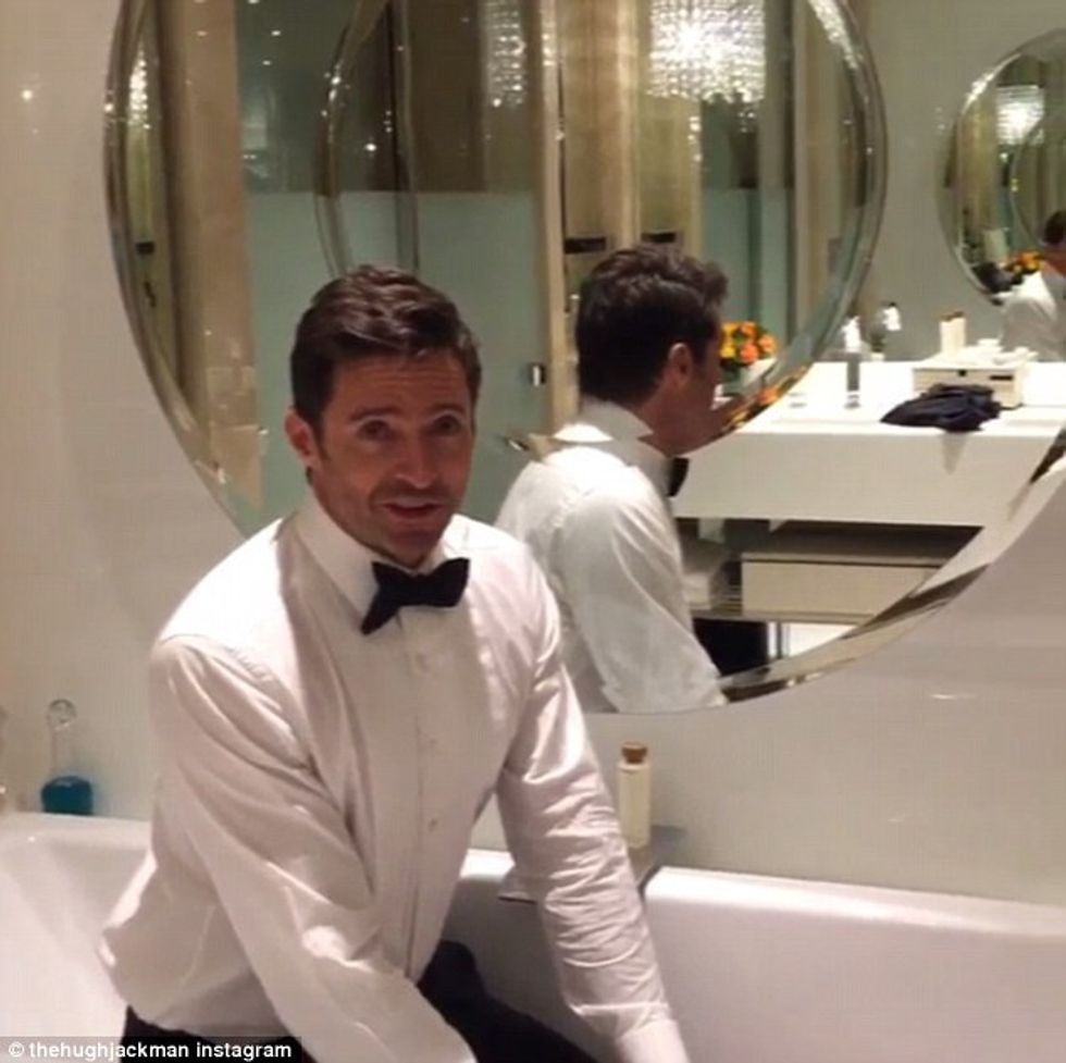 That may look like a drunk homeless man applauding because he hasn't gotten kicked out of the theater yet– but it's actually Shia Labeouf watching all of his films while being streamed over the internet. Not sure which would be weirder, but then again, Shia has turned himself into the weirdest celebrity/performance artist over the past year. From telling Jimmy Kimmel his wild drunken tale about getting arrested at a cabaret, pulling his own tooth out for a role in Fury, and all his intoxication arrests this has really been the Year Of The Shia.