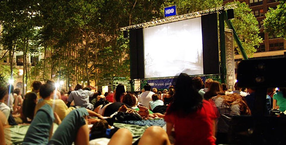 I would specifically recommend a drive-in theater to be specific, but considering my state has a shrinking population of about 7, I won't hold you to it. Just look around your community for outdoor movie events. They're super fun, and you won't get in trouble for bringing your own snacks!