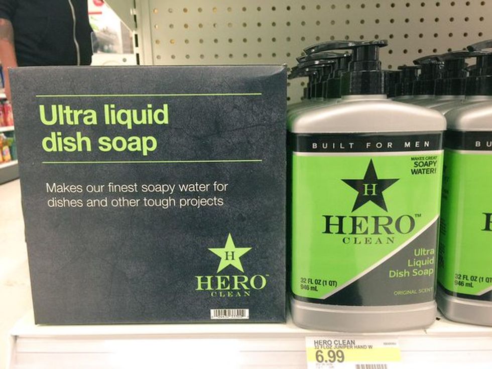Because only a dish soap made for men would be deserving of the name "Hero Clean."