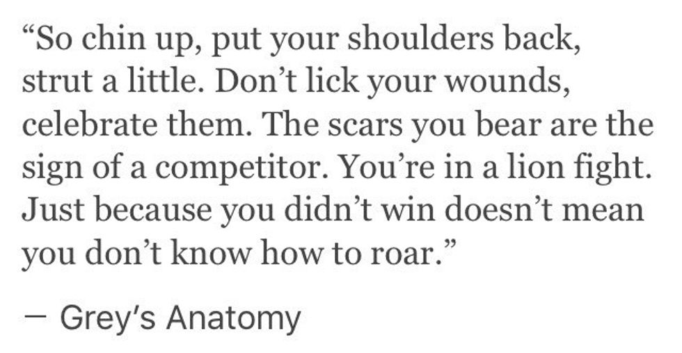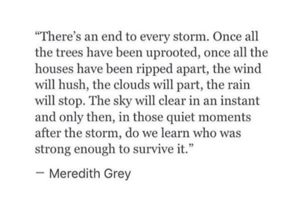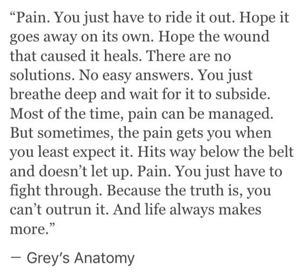 Just remember that Meredith Grey survived a drowning, a bomber, a plane crash, a shooter, and so much pain and death. She managed and remained badass along the way. You can follow this advice and conquer the pain as well!