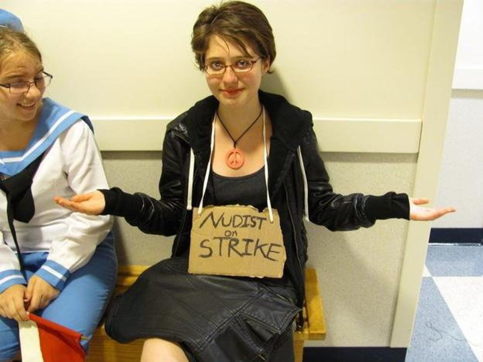 How to pull it off: Hate dressing up for Halloween? Here's your go-to. Make a sign that says "nudist on strike" and BOOM. Hashtag brilliant.