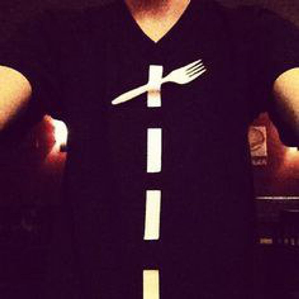 How to pull it off: Wear a basic black t-shirt, artistically assemble some electrical tape in a "median" fashion, and stick on a fork. Go big or go home.