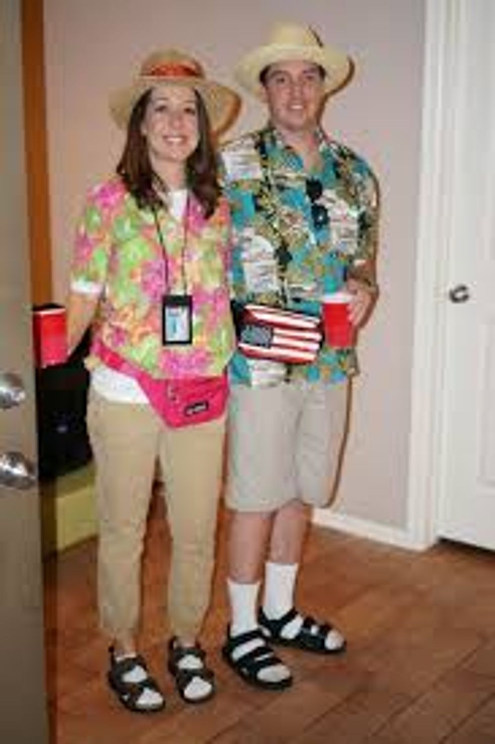 what you need: Hawaiian shirt, disposable camera, hat (preferably a visor or safari style hat), running shows, bonus points: fanny pack
