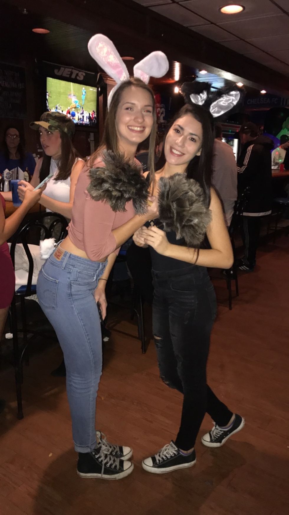 what you need: two pony tail holders to put two buns on your head, face paint, brown shirt (added creativity: throw on a party hat to be a "Party Animal")