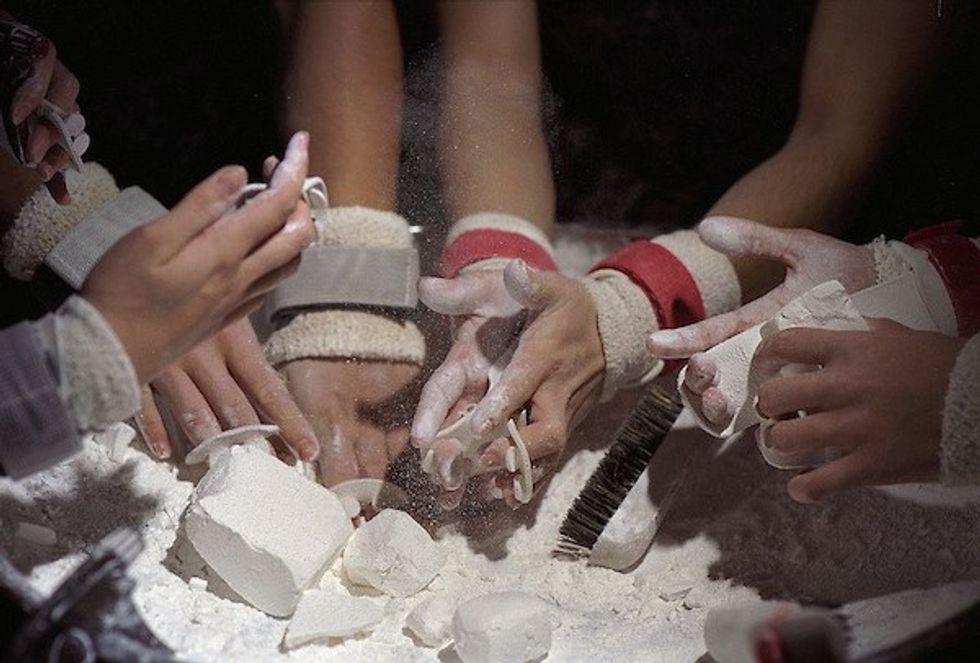 Yeah, “technically” chalk is used for getting a smoother grip on the equipment, and you do love it for that, but the real most important reason for it is making sure every teammate’s butt has a chalk hand-print on it by the end of each practice.