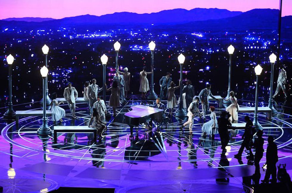 John Legend sang two beautiful songs from La La Land ("City of Stars" and "Audition") while dancers did beautiful choreography on the stage around him.