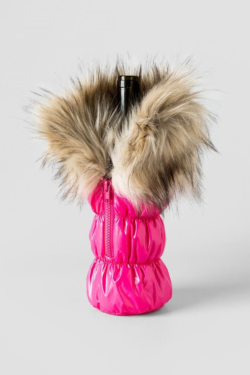 What is it? Exactly what it looks like. Who doesn't love pink, parkas, and wine?