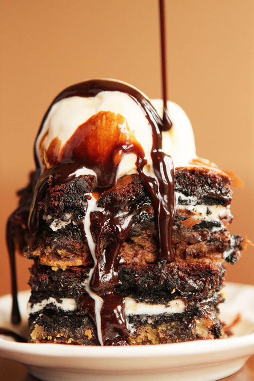 2) Brownie and Cookie Dough Topped with Ice Cream