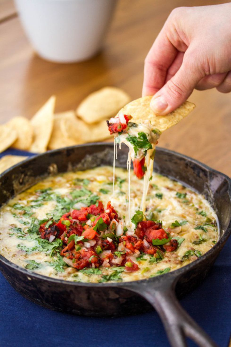 6) Queso Fundido with Fire Roasted Tomato Salsa