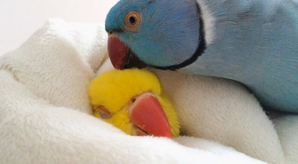 6. Rio and Tweety: Rio and Tweety are two Indian Ringnecks. Rio is blue and Tweety is yellow and they're both so cute. I love the aesthetic of this account as well. Normally, aesthetic accounts are associated with nature photos and fashion accounts, but I love the focus of Tweety's and Rio's colors in this account. I also love the different personalities of Rio and Tweety. If you know anything about birds, you know that ringnecks have the cutest little voices, and these guys are no different. There are a few videos up of Rio babbling to Tweety and trying to get Tweety out of cuddling in a blanket and I'm so in love!