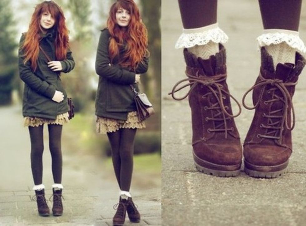 I wear higher socks with patterns and lace with my combat boots and high top converse to make them a little more feminine and add some cute accessories to my look. Plus who doesn't love fun socks.