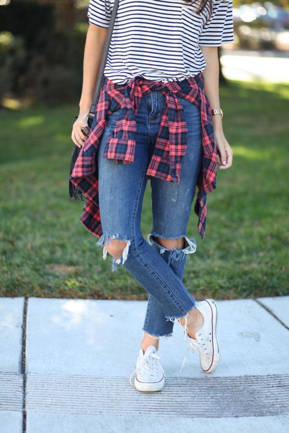 Ripped denim, especially lighter washes have been making a steady appearance in fashion. A ripped pair of denim is a great way to mix up your look so you don't wear the same pair every day like I always end up doing.
