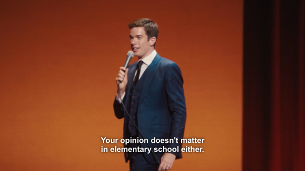 His Bill Clinton bit is one of the highlights of his show, “The Comeback Kid," and I would highly recommend watching it. All in all, John as a kid comes home and he tells his father, “I'm gonna be a Democrat and I'm voting for Bill Clinton." His dad responds with, “You have the moral backbone of a chocolate éclair."