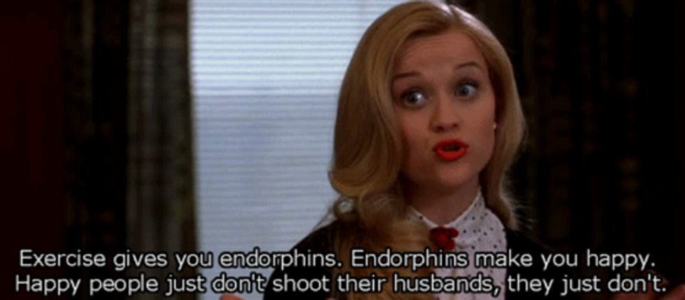 Exercise gives you endorphins, endorphins make you happy, happy people don’t kill their husbands