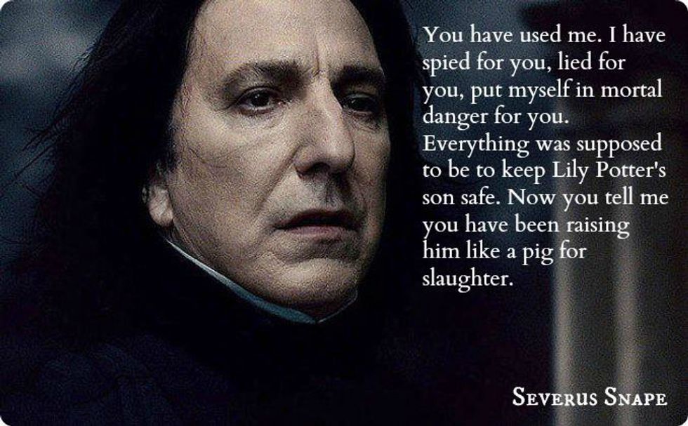 2. " You have used me. I have spied for you, lied for you, put myself in mortal danger for you. Everything was supposed to be to keep Lily Potter's son safe. Now you tell me you have been raising him like a pig for slaughter." - Snape to Dumbledore