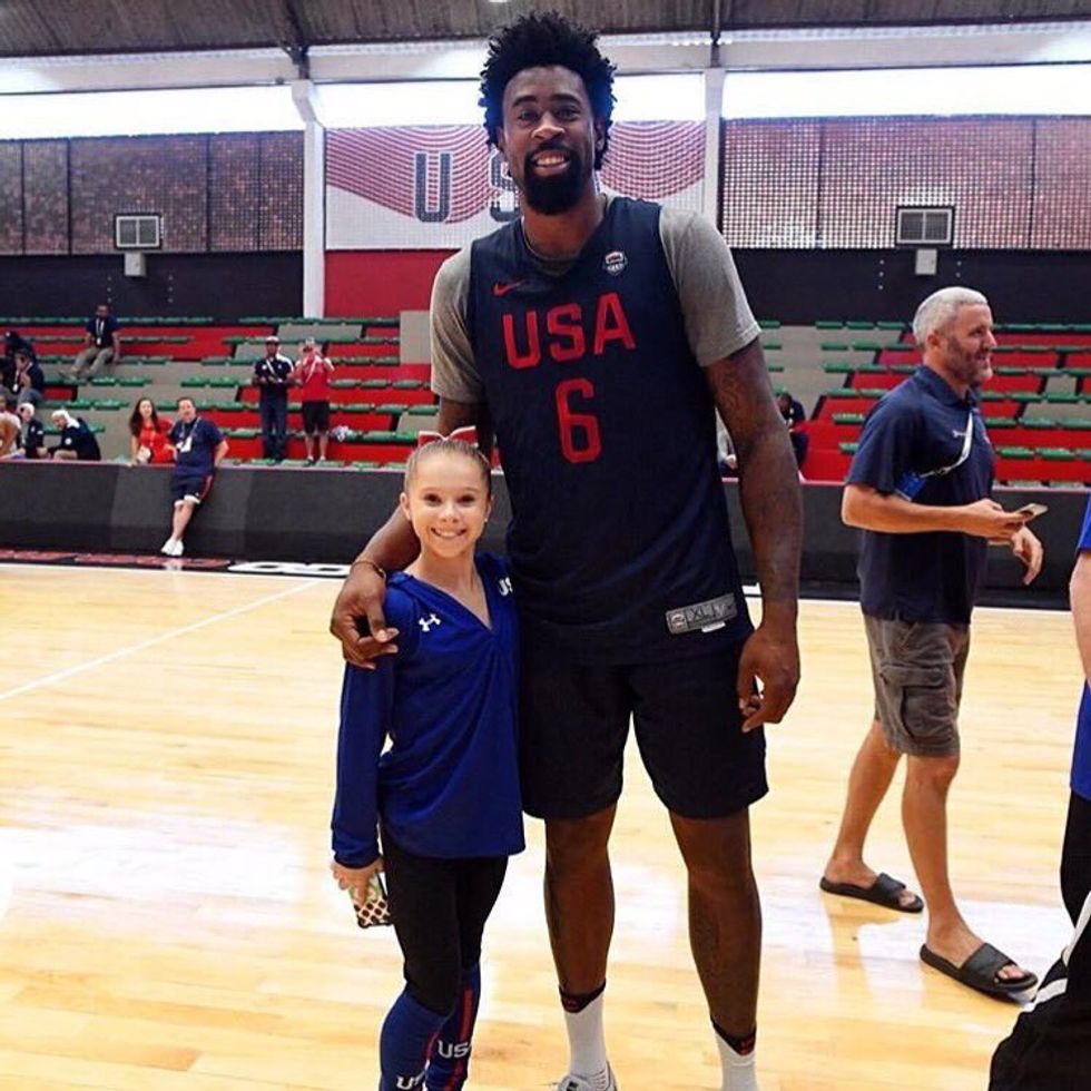 Olympic gymnast versus Olympic basketball player versus average 21 year old girl? Let's play a guessing game at who would win a dunking contest (hint it's definitely not me).