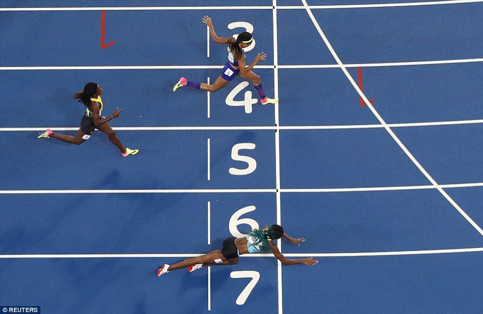 Or possibly even a really bad track burn! The female sprinter who dove to win gold? Still not sure if that was planned or not, but I'd like to applaud her for looking like the average human at that second; made me feel good about any future embarrassments.