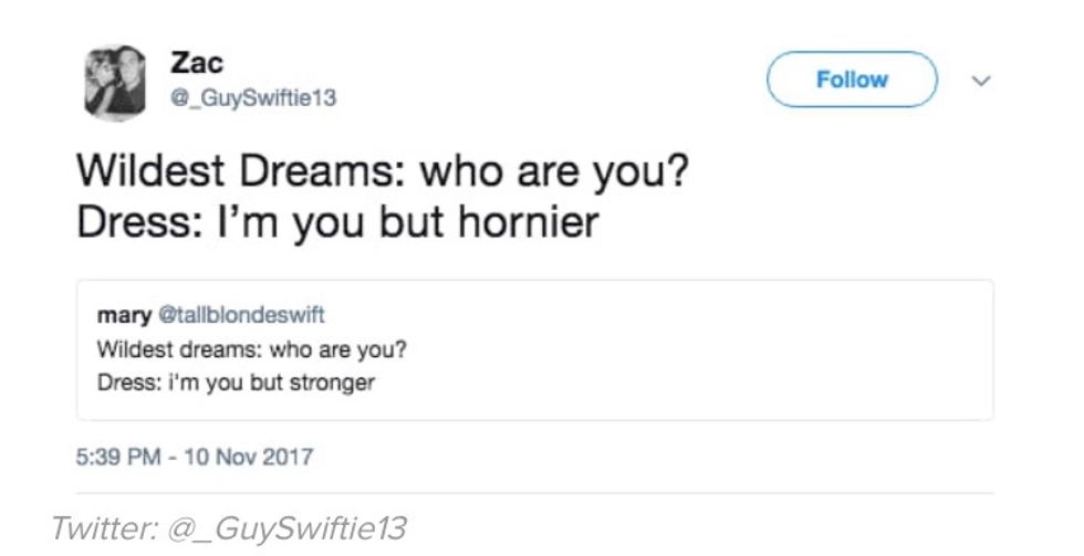 By far, Taylor's sexiest song on an already suggestive album. Most fans were alarmed by 'Dress' basically giving us a look at her sex life, but under all that you're still seeing the old Taylor in the bridge (the passage above). The real meaning behind the song a reflecting on a failed relationship and the lyrics above cut into you just as "All Too Well", "Dear John", and "Wildest Dreams" do.