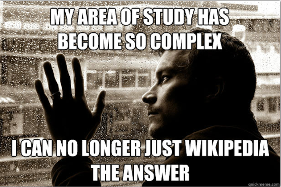 There comes a point in our classes where the information you're learning is so complex that the computer even says you're screwed when you can't find the answer.
