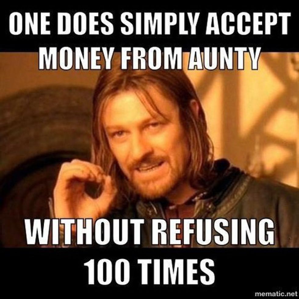 1. When you're offered money from a relative and you're forced to "refuse it" by your parents.