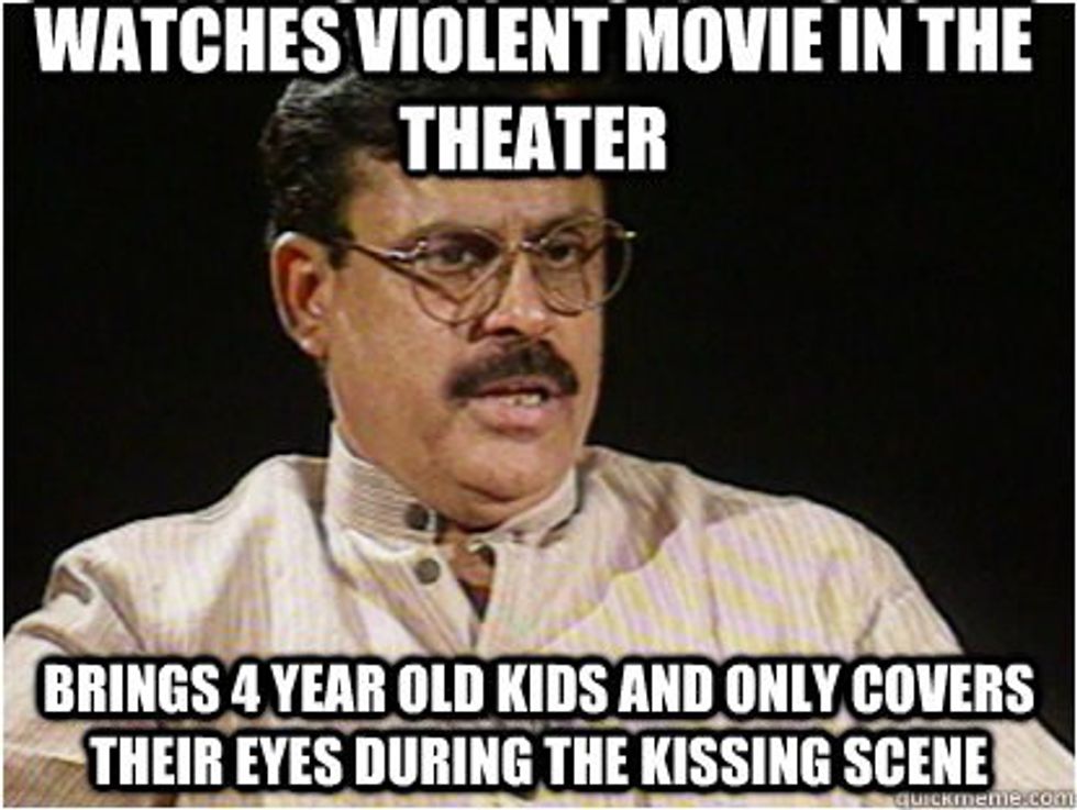 Watching an Indian movie, especially a South Indian movie, in which an actor and his “gang” is shown decapitating many individuals with sledgehammers and butcher knives is OK for Indian parents because it’s an Indian movie. However, watching an English movie where the lead actors are making out is just way too inappropriate. Now we will forever be known as those “heartless” people in history class who never show any emotion when watching a documentary because we practically grew up watching Indian movies since childhood.