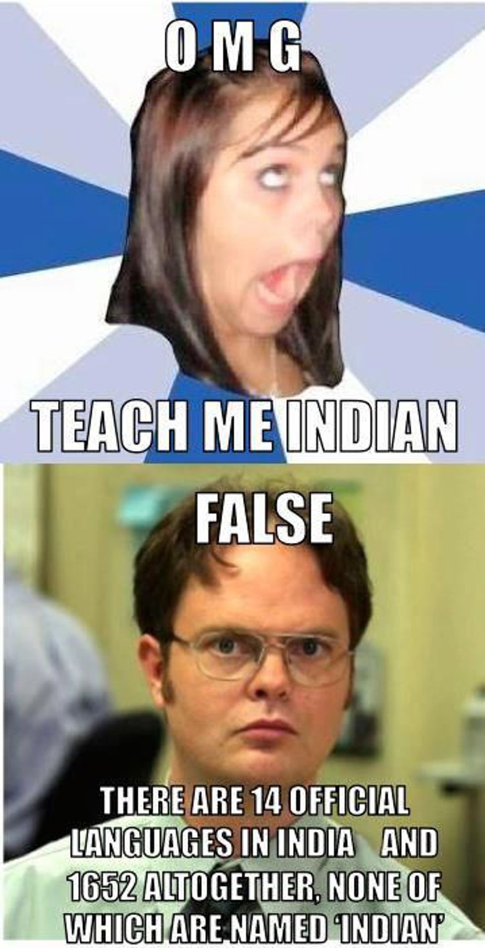 Apparently the fact that I don’t speak “Hindu” or “Indian” is appalling to some, and when I do speak that “other language," it always follows with a big laugh and a “WHAT DID YOU SAY?” Ugh.
