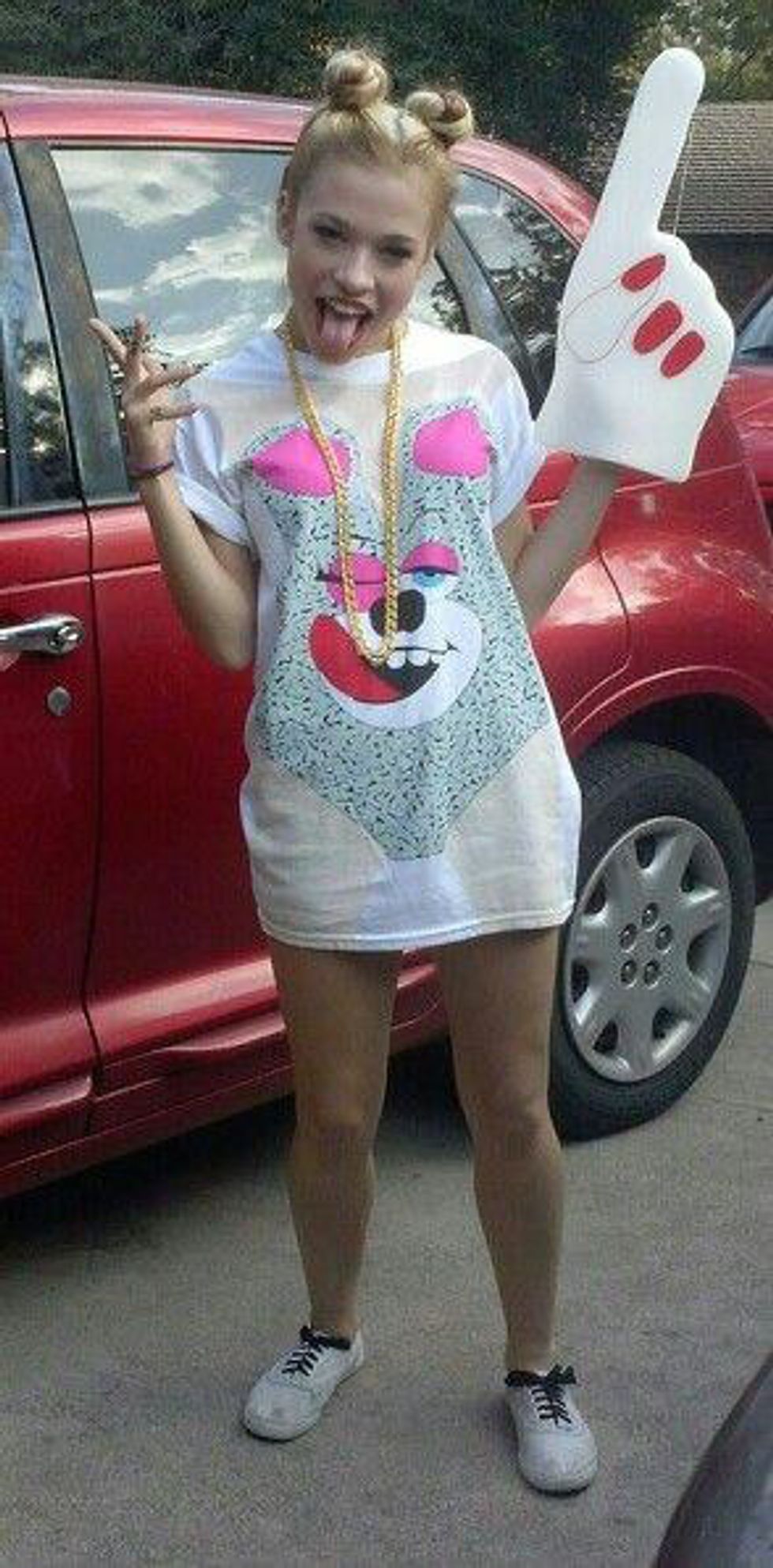 Girls love any opportunity to dress "edgier" than their average attire, and no better way to do that than to be a thug--complete with cornrows, chains, and fake sleeves. "No Ragrets".