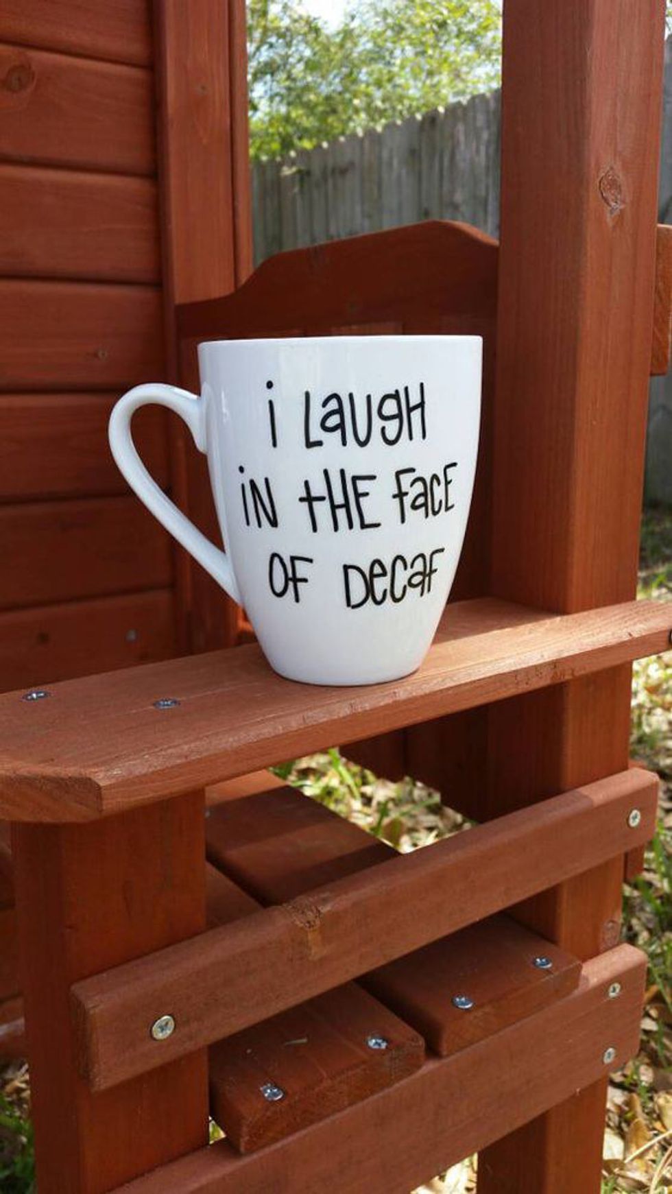 10. The "decaf? Who drinks decaf? What's the point of drinking coffee if it doesn't make your heart race and your hands jitter?" mug.