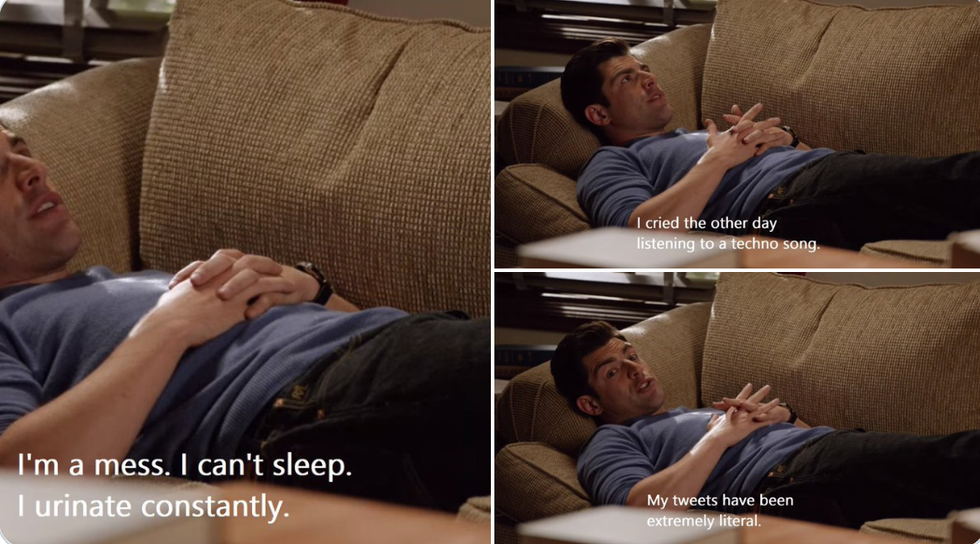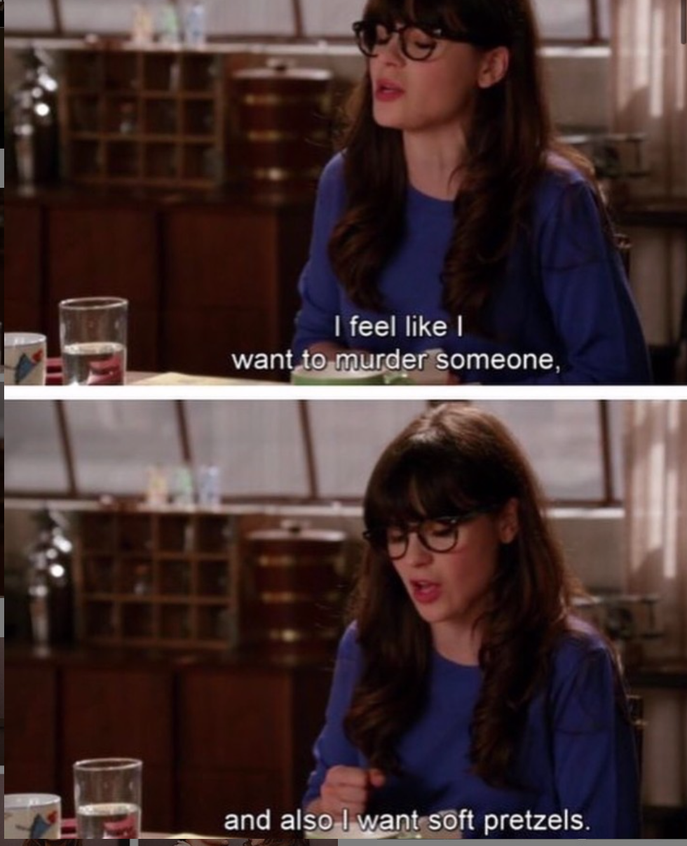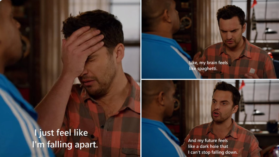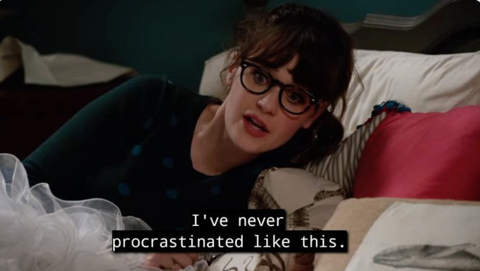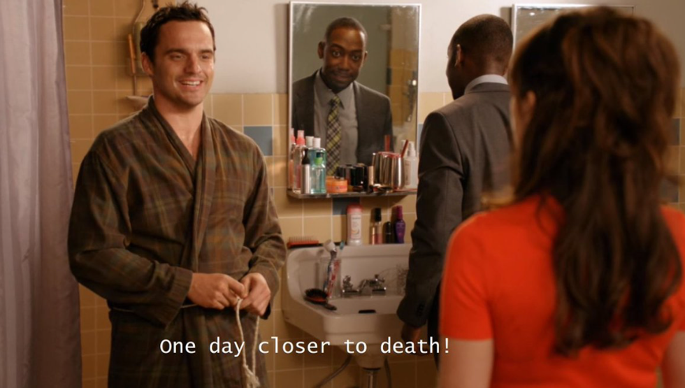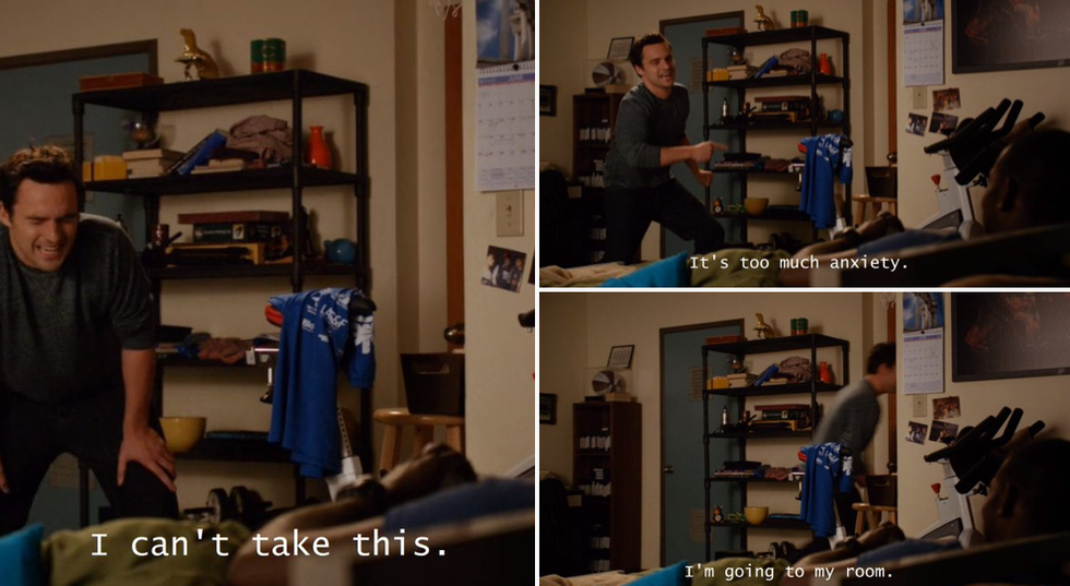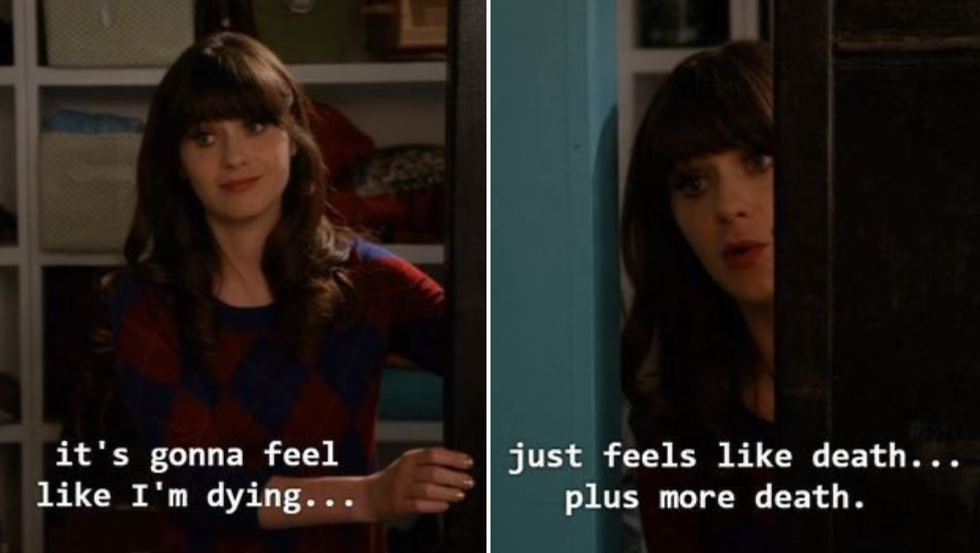 Finals week is always one of the most stressful weeks of school for students. There's final papers, exams, and final projects, plus the potentially added weight of having to move out of your living space. I think that most of these "New Girl" screen caps describe the different emotions and thoughts that every college student has during this time.