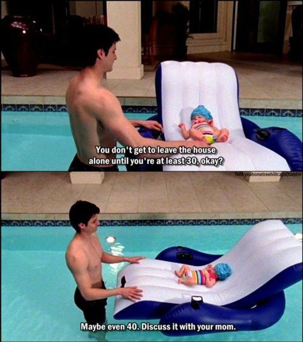 2. "You don't get to leave the house alone until you're at least 30, okay? Maybe even 40. discuss it with your mom"