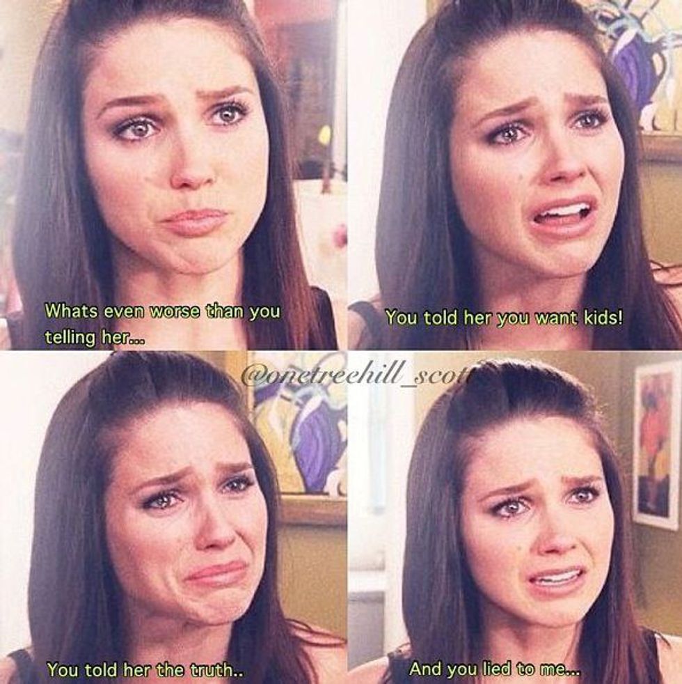 9. "What's even worse than you telling her... You told her you want kids! You told her the truth and you lied to me."