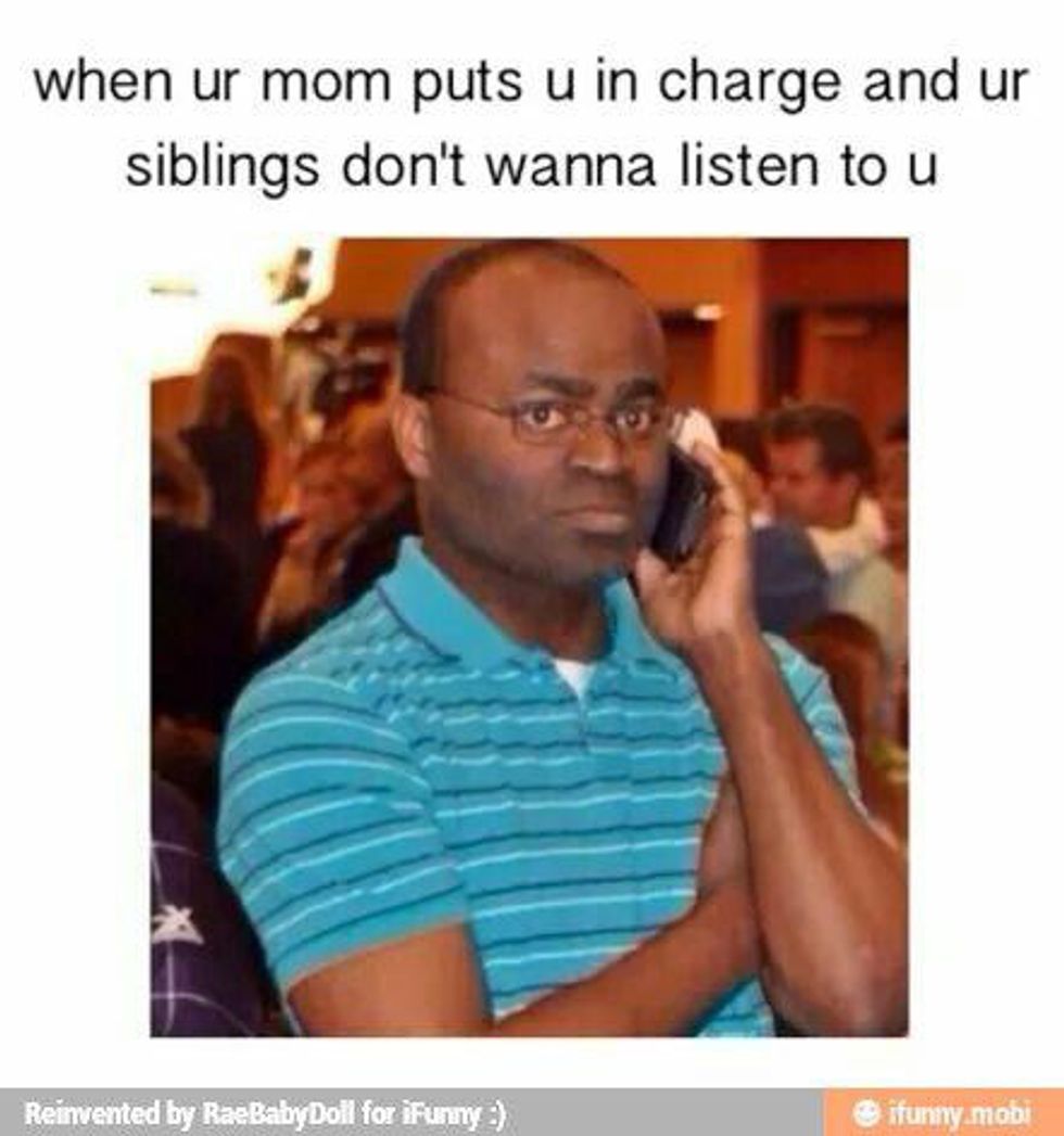 10. When your parents put you in charge but she won't listen to you