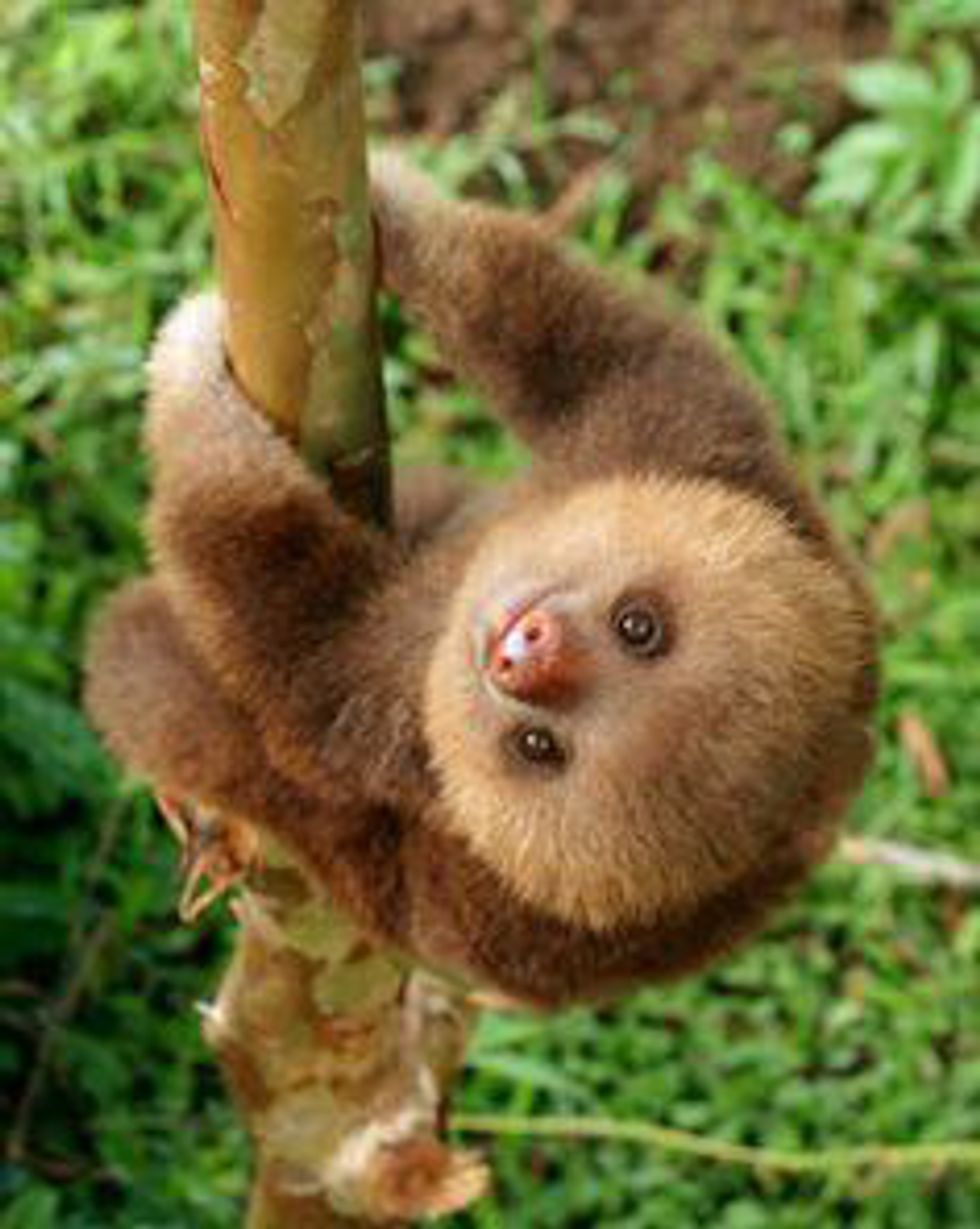 1. Baby sloths hanging from trees