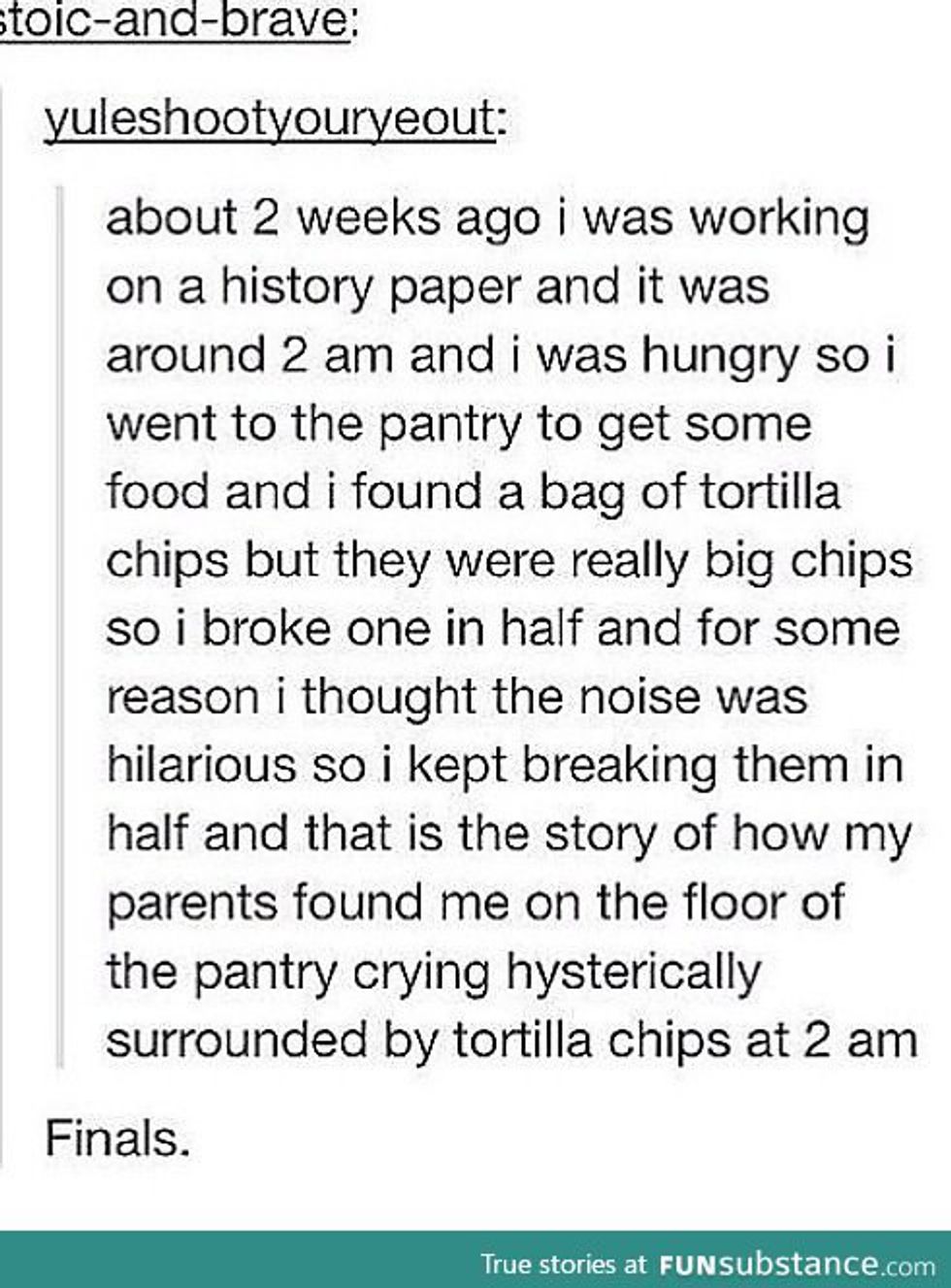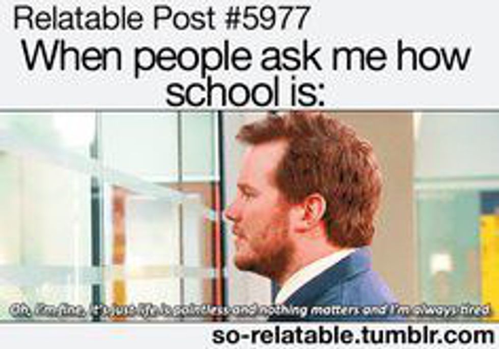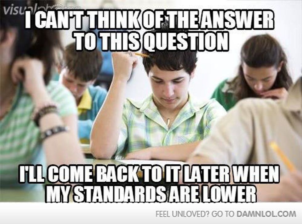 We all know the struggle. You spend the week trying to learn all the material only to get the exam, and realize that you know nothing. You look at your classmate that is crying and say "See you next semester." I would say more but I am currently running on about 10 hours of sleep over the span of a week. Still having 5 final exams, 3 online assignments, and data analysis that must be turned into a research report due within the next week. So instead, I will leave you these funny memes that I looked up instead of studying.