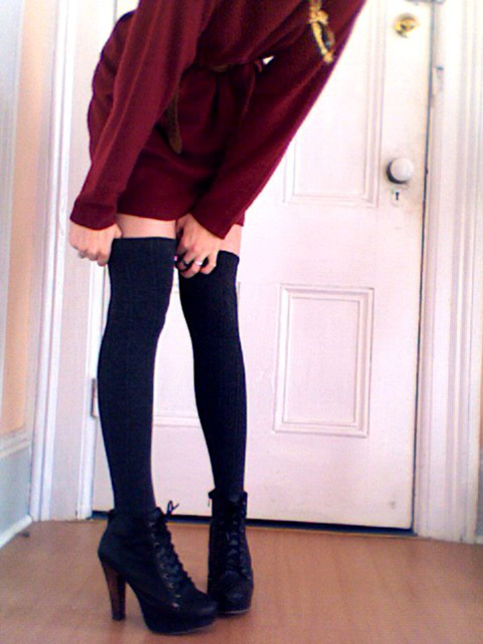 There have been a lot of girls wearing long sweaters with no pants and high socks or boots, and we love it. Not only is it super cute, but it's also comfortable, and its definitely becoming an acceptable and fashionable thing to go out in.