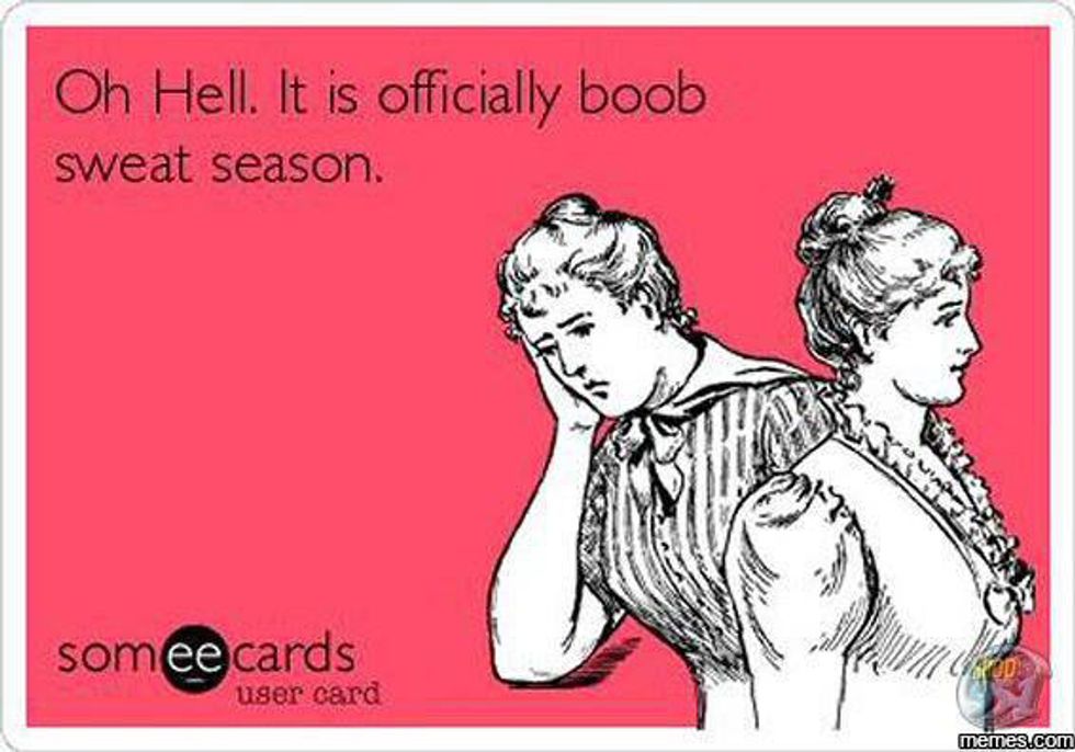 In all of its glory, it's everywhere. In every little crevice. The cleavage, the underboob, the side-boob: just put some deodorant and a Shamwow up in there for the day and that'll do the trick. For this reason, summer is a big chested girls enemy.