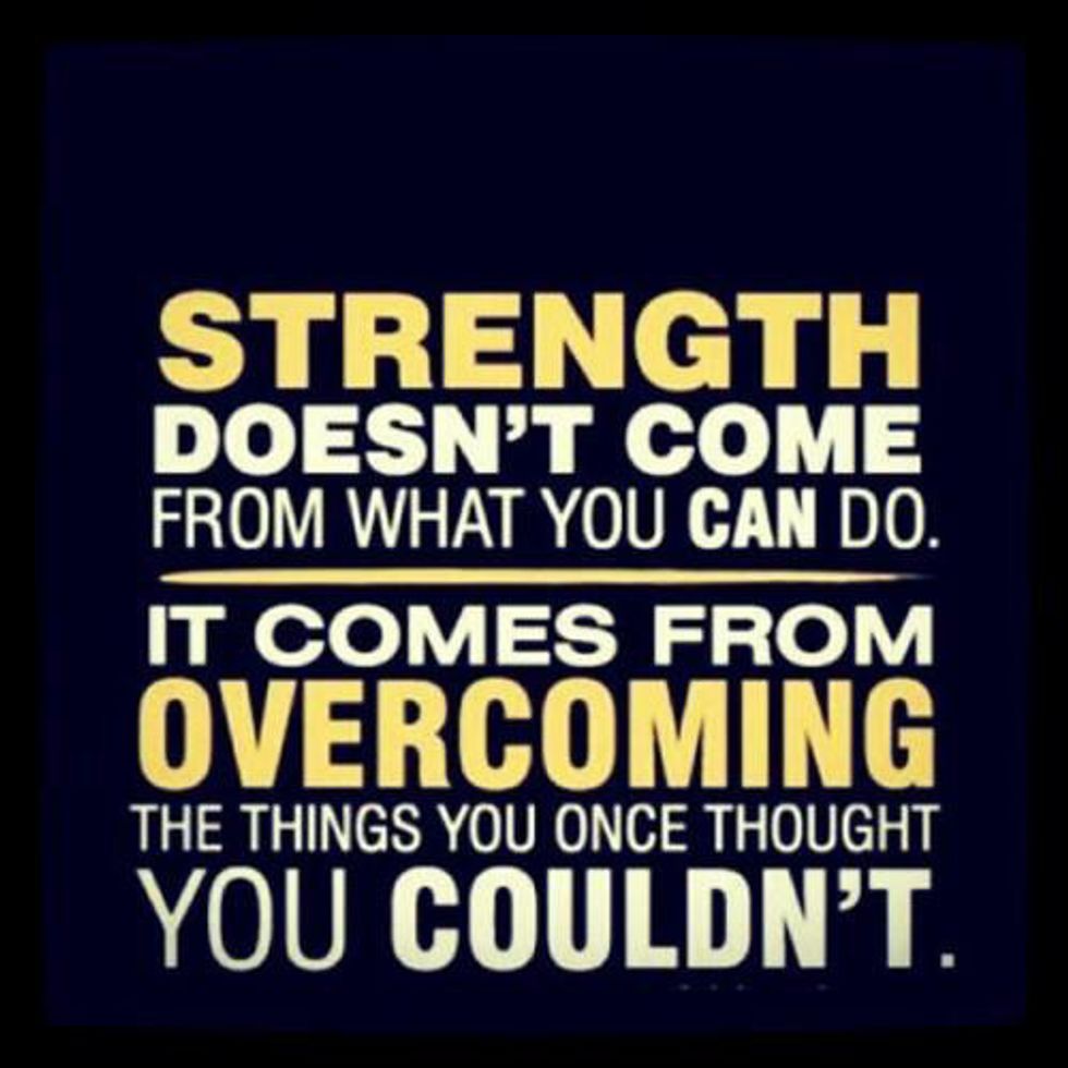 True strength isn't easy. It takes work. Sometimes obstacles come up in life that seem impossible to overcome; but by working hard and persevering, you will see how strong you really are.