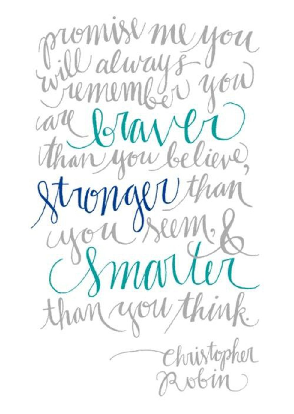 - “Always remember you are braver than you believe, stronger than you seem, and smarter than you think.” —Christopher Robin
