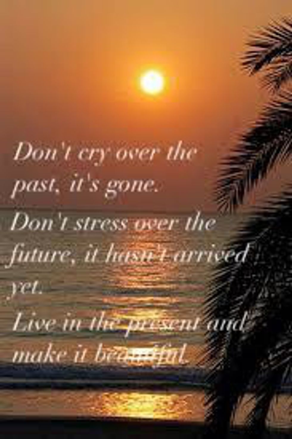 - “Don't cry over the past, it's gone. Don't stress about the future, it hasn't arrived. Live in the present and make it beautiful.” –Anonymous