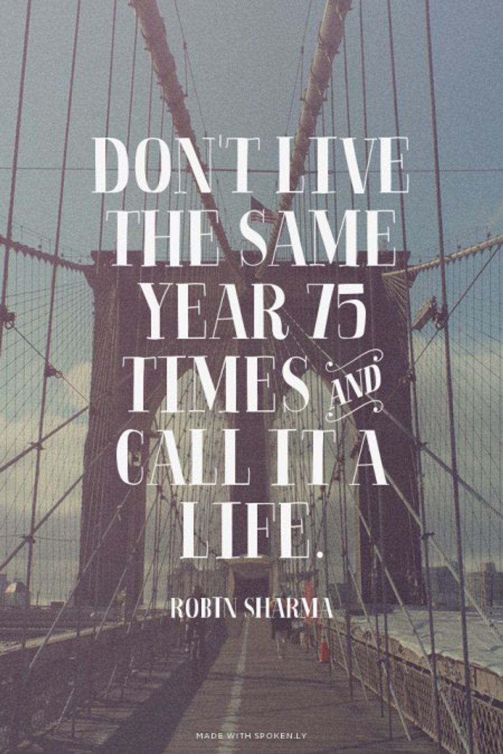 - "Don't live the same year 75 times and call it a life." - Robin Sharma