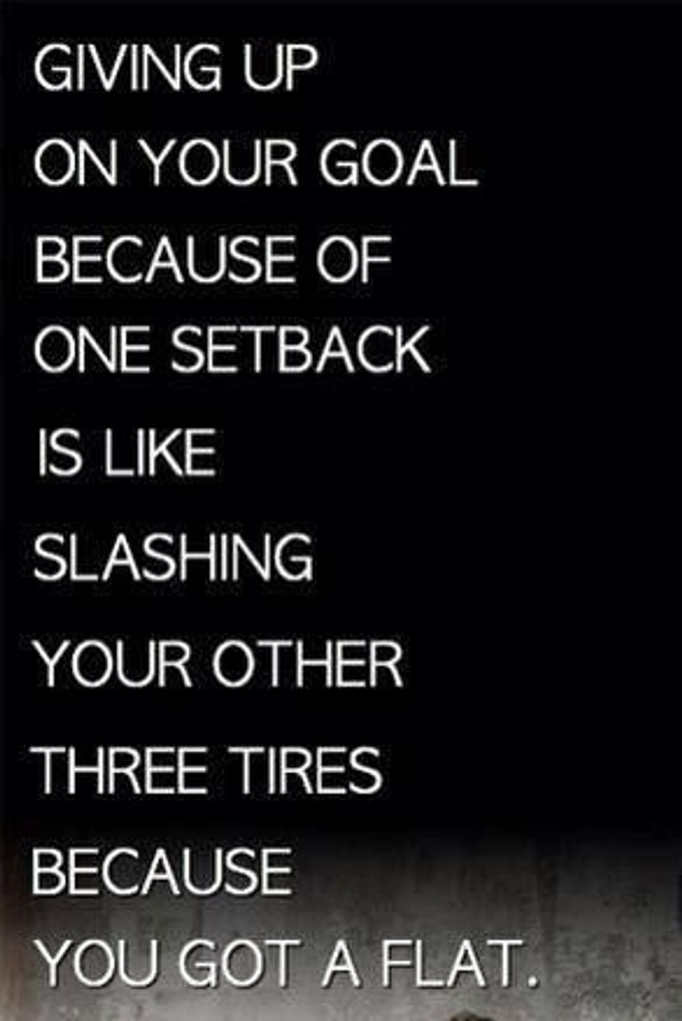 4. "Giving up on your goal because of one setback is like slashing your other tires because you got a flat." - Anonymous
