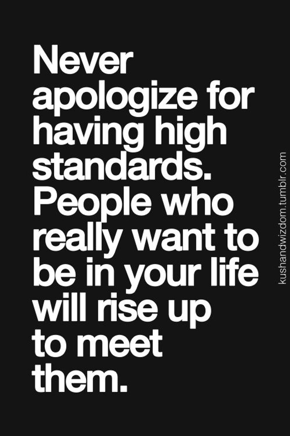 8. "Never apologize for having high standards. People who really want to be in your life will rise up to meet them." - Anonymous