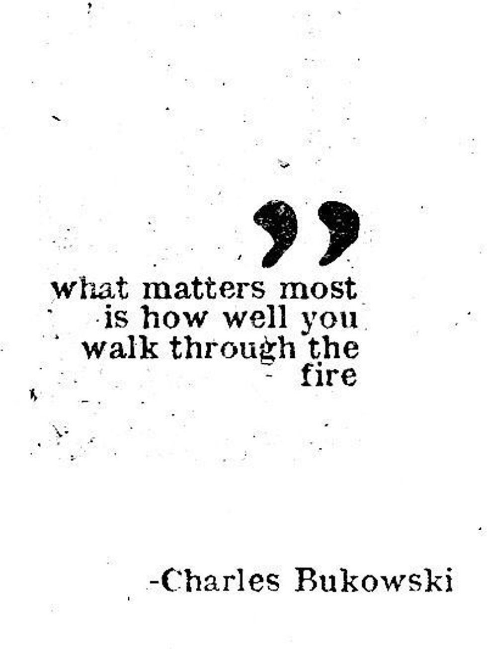 13. "What matters most is how well you walk through the fire." – Charles Bukowski