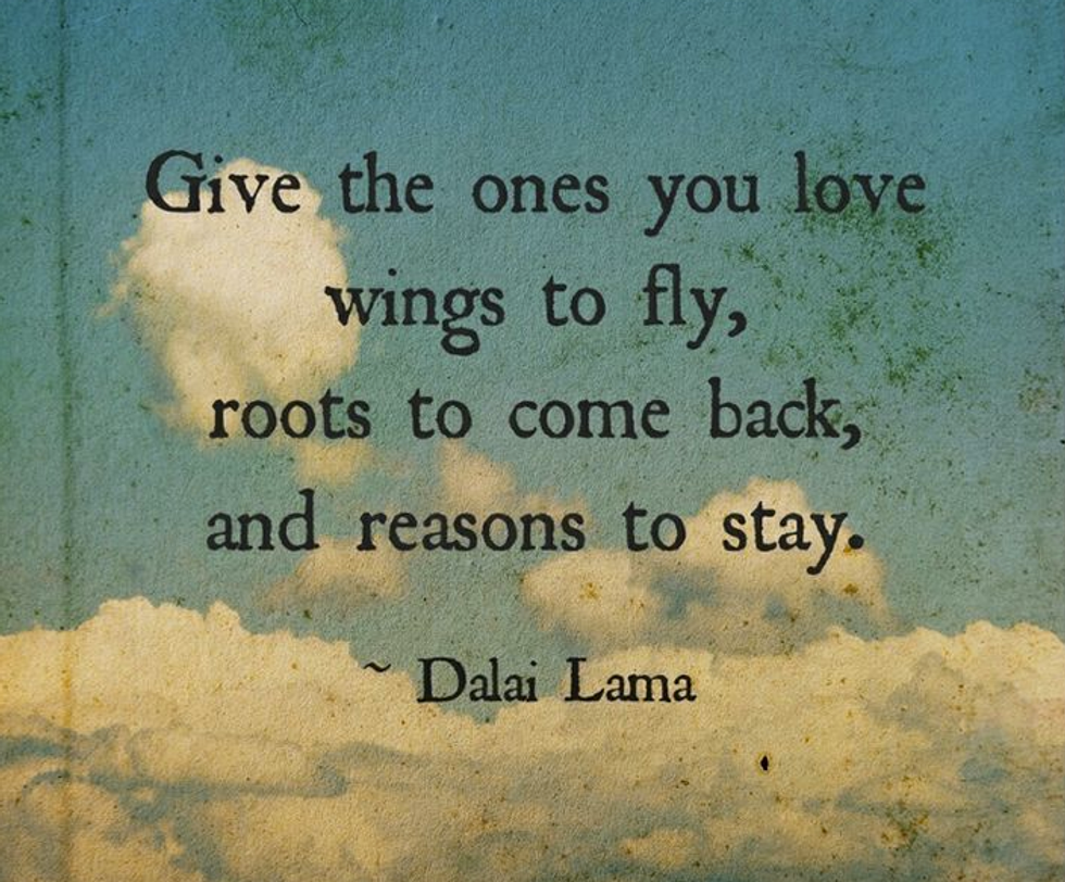 9. "Give the ones you love wings to fly, roots to come back, and reasons to stay." – Dalai Lama