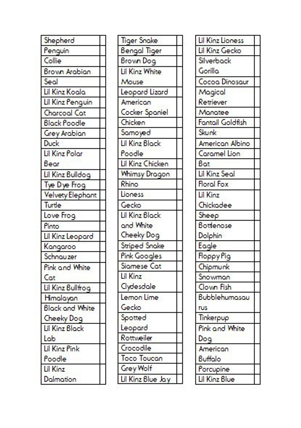 2. Checklists were a necessity; the animals piled up quickly.