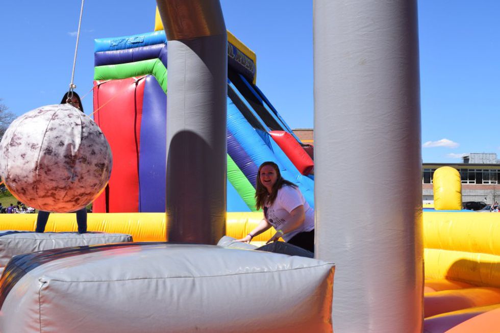 At this year's event there will be 30 gigantic inflatables, not only will there be the typical bounce house but there will also be jousting, bull rides, slides, and obstacle courses for anyone who purchases a wristband at the event. There are ones as well just for kids for the worrisome parent's sake, but at the entrance line of the many bouncers you will find parents, teachers, and students; not the typical accepted age range for these memorable inner childhood toys. Anyone who is ready to laugh, bounce, and have a great time is welcome!
