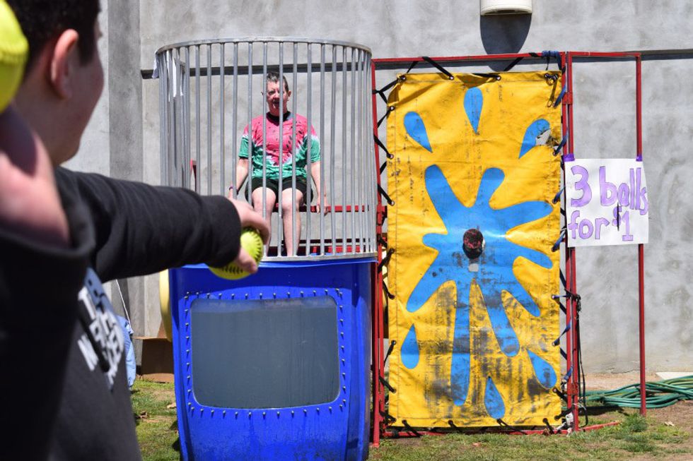 Teachers, students, even the principle of the high school hop into the tank to get dunked under ice cold water. Anyone who wants to participate can take a shot at throwing a baseball at the target, if the target is hit, down the victim goes. Want to dunk a particular person? Challenge them to get in the tank, hopefully you have a good arm! Only for good fun, but it's always a laugh when you can make your principle get dunked.