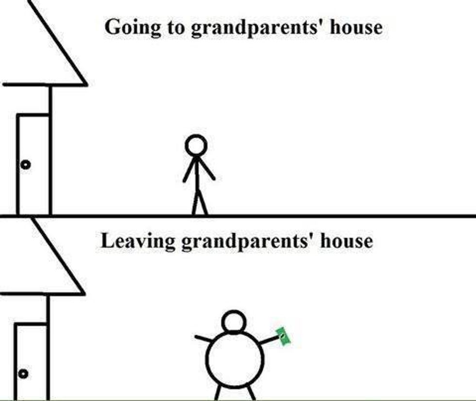 If you know you're going to go see your grandparents on a certain day, you might as well not eat that day or the day before for that matter. You know you're going to get snack, a meal, more snacks and a meal to go home with.