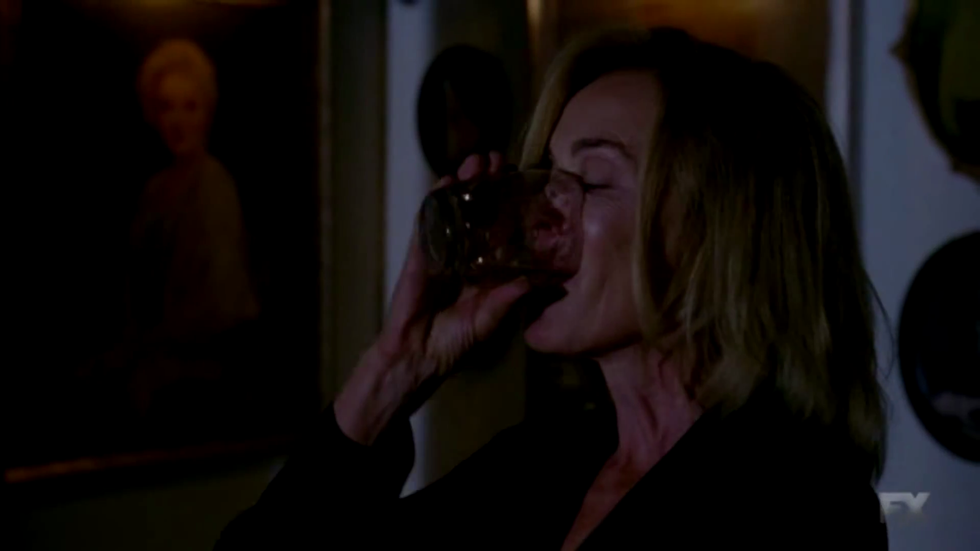 Similar to her smoking addiction on AHS, drinking is also a very big gamble. From Gin Rickey to bourbon to straight vodka, the cast of "American Horror Story" is not lenient with their drinking game. Jessica Lange, seemingly downing dozens of shots manages to stay sober throughout entire episodes. Of course, whether she's acting or not is a different story; however, based on these performances, these scenes take many guts out of these actresses. Cheers to you, Jessica.