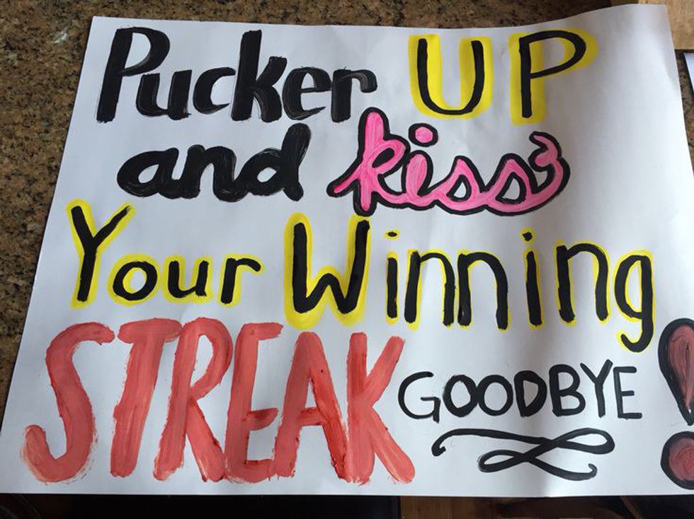 Having someone hold up a poster for you is one of the best feelings ever. Someone went out of their way to create something to support you and your team. Some were simple with just the school name, or some were for specific players, but on others... The trash talk was real.